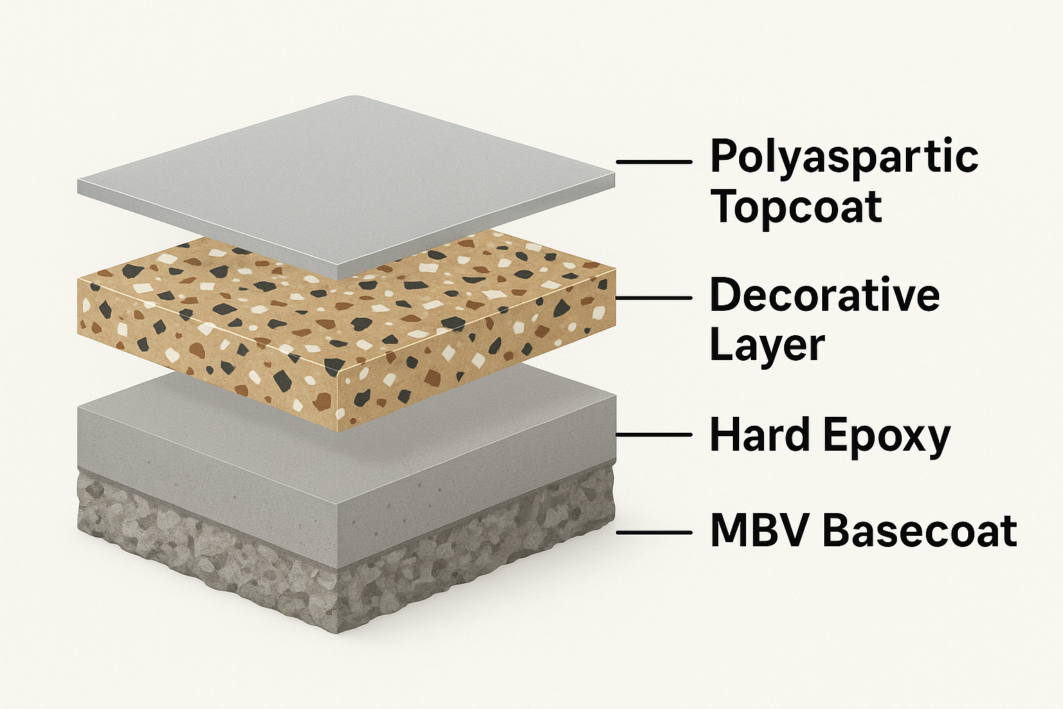 UV & Scratch Resistance: Polyaspartic topcoat prevents yellowing, fading, and surface wear.
